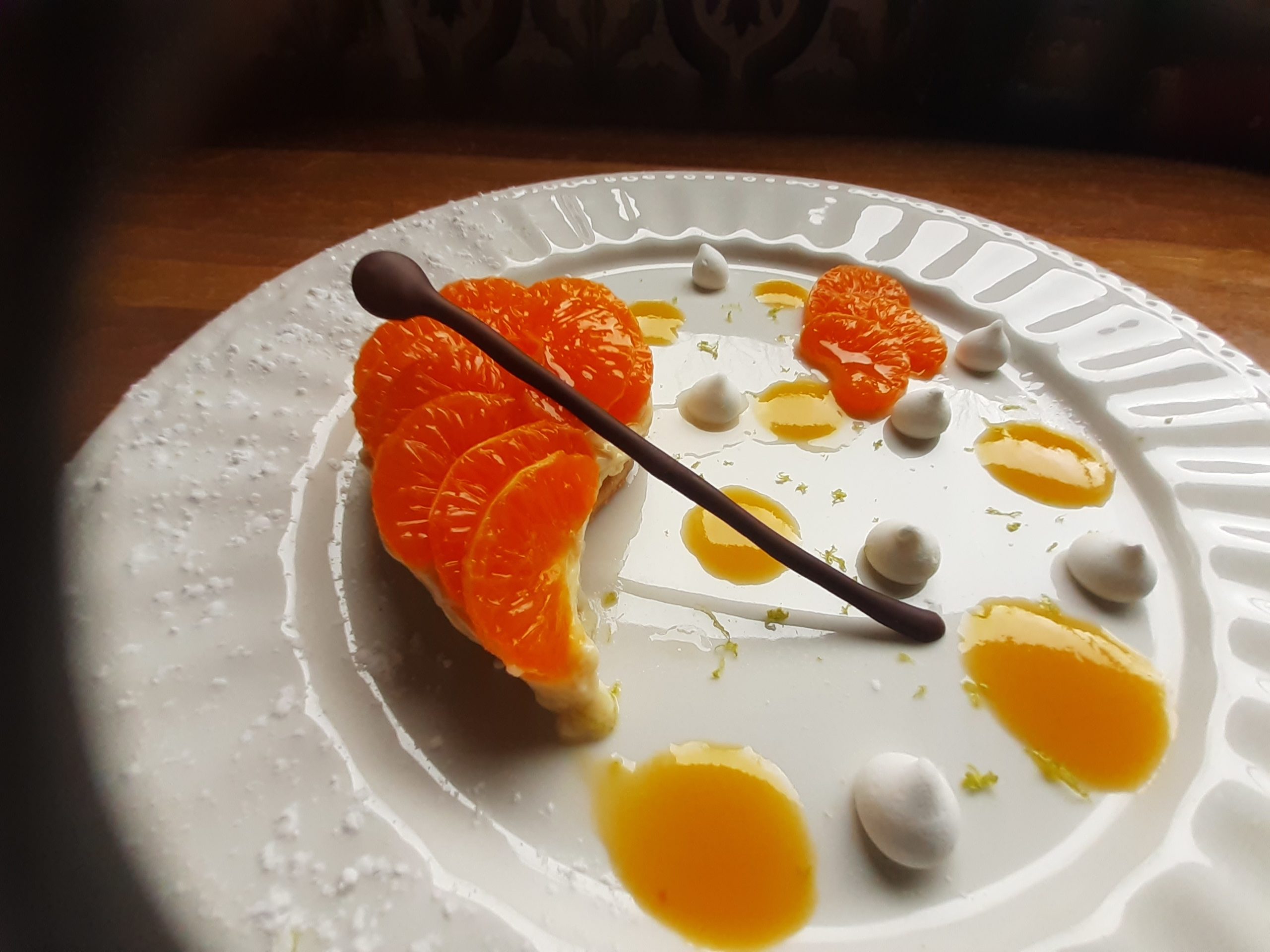 -Sablé breton, mousse aux fruits de la passion et espuma chocolat blanc